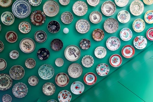 Well, That's Something New — This Designer Put the Homeowner's 100+ Piece Ceramic Collection Across the Ceiling of Their Tiny Apartment's Kitchen