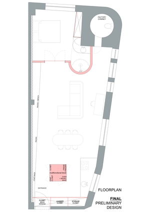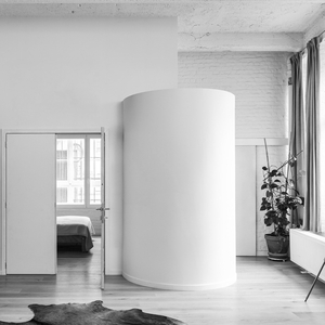 The optimal solution was to position the shower in the living area with the toilet in the former factory chimney.