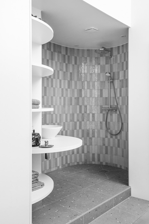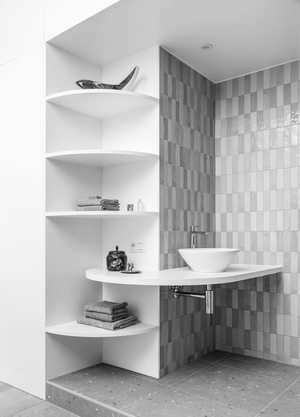 Given the shape of the existing space, it was challenging to fit a shower room into the floor plan without compromising spatial quality, daylight incursion and the possibilities regarding the location for plumbing.